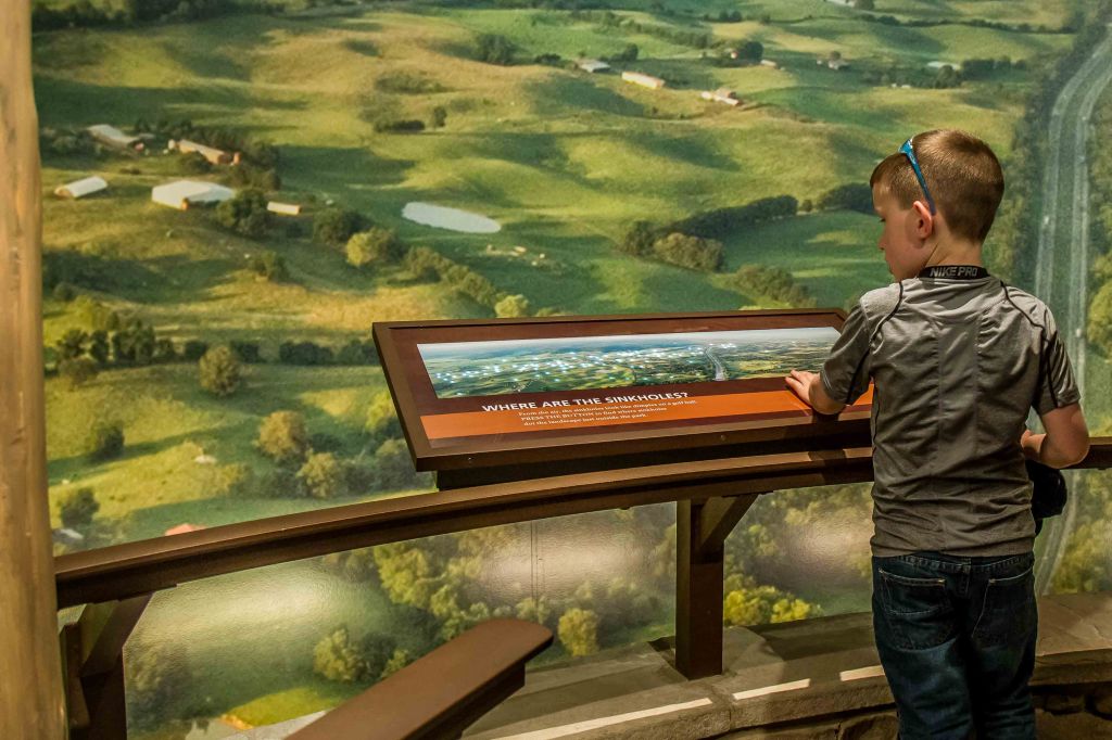 While the caves are the highlight of the park, don’t skip over the trails on the surface.  Be sure to notice the sinkholes here and the rivers emerging from the rocks there.  The Visitor Center is first class, as well.  We’ve never spent so much time in a visitor center, and it makes sense at Mammoth Cave, with its central location to the entrance of the caves.