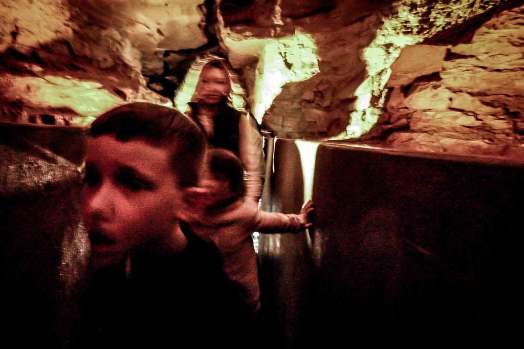 Lost River Cave, just south of the national park in Bowling Green, offers cave exploration by boat and kayak. They also offer the Discovery Cave Crawl for ages 6 thru adult. Get ready to reach for your inner child because this is no ordinary, sedate walking trip. When the liability and information page suggests a full change of clothes (including underwear) and a garbage bag, I’m pretty sure that guarantees at least the kids will have a good time. 🙂 And… they did!
