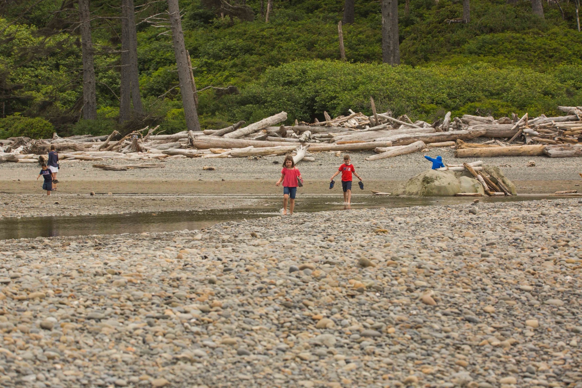 For a costal experience, we drove to Lake Ozette to hike the Cape Alva Loop, a 9.4 mile triangle, the second leg of which is on a sometimes rocky, sometimes sandy beach.  While there wasn’t much climbing and elevation gain, the length of this hike would test the kids, who hadn’t done much more than 5 or 6 miles at a time.