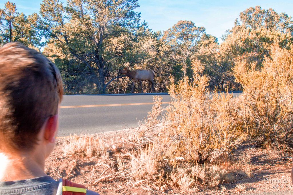 We then walked along the paved path near 2 miles to Kaibab to hike down to Ooh Aah Point. On the way we saw a number of elk casually walking on the opposite side of the road!