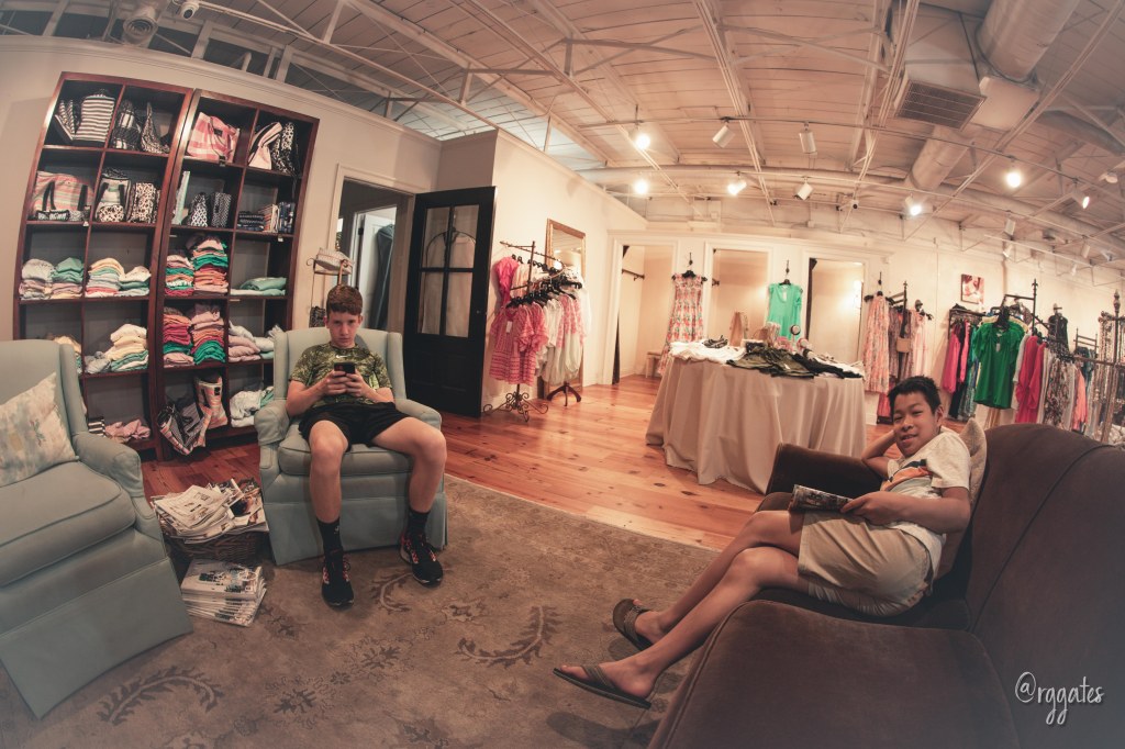 The town of Ocean Springs has a cute little shopping district adjacent to the WAMA, so Jenn and Lydia got to have a fun mother/daughter experience…. and Lincoln and Henry got to experience what it was like shopping with the ladies.  🙂