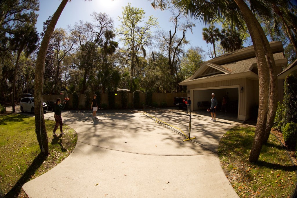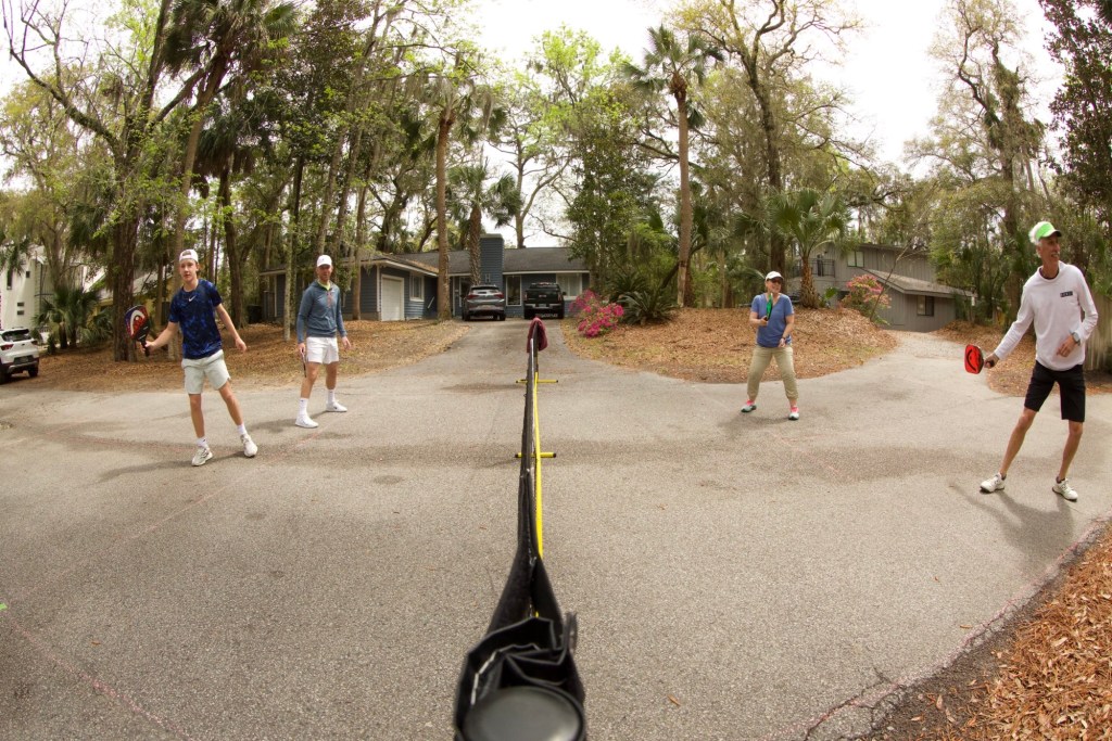 Grandpa Dave and Grandma Laura brought their pickleball net, so we set up a court on our street, and also took it to Chaplain Community Park where the bounces were a little more true.