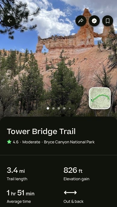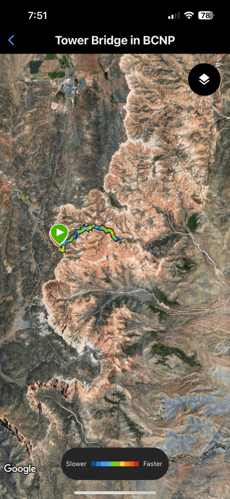 Most of our memorable hiking locations are mountains, with climbs to start (Storm King, Blue Lake, and Crater Lake come to mind). This was different. Our first hike took us to Tower Bridge. While Bryce Canyon isn’t really a canyon, the hiking is just like a canyon in that the trails go down first, reminiscent of our hike out to Ooh-Aah Point at Grand Canyon National Park.