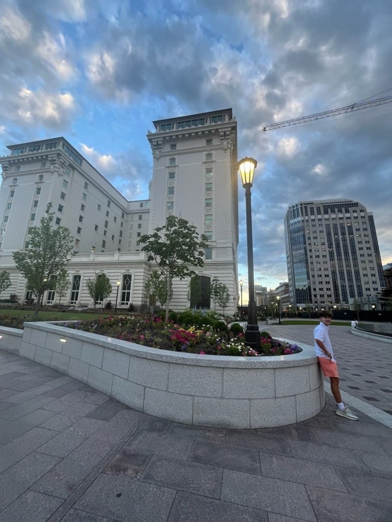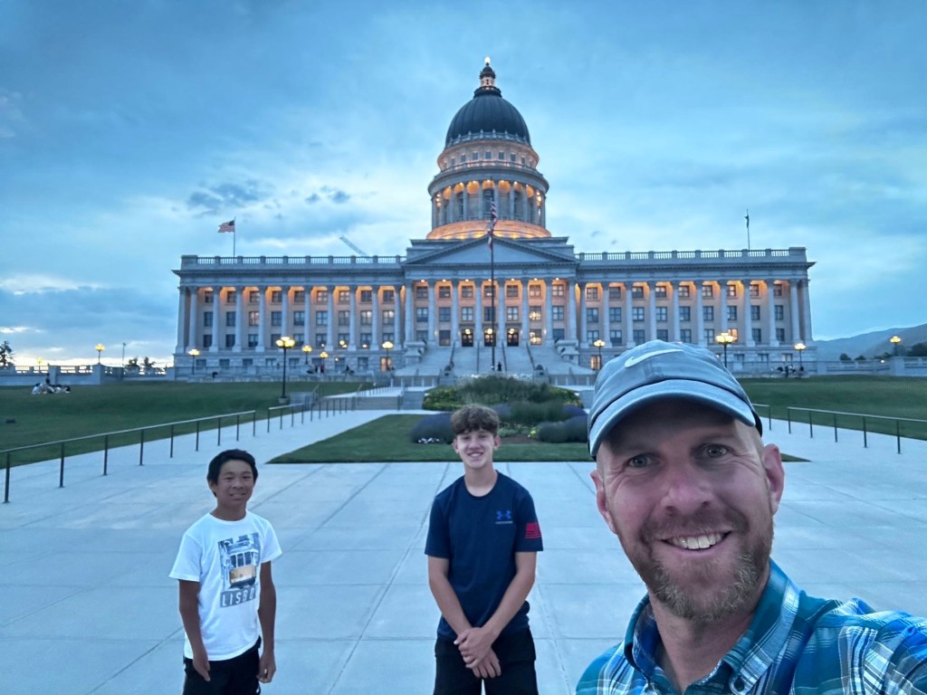 Salt Lake City is hot. Not summer in Vegas or Phoenix hot, but still really hot. The shade is really quite pleasant; the direct sun is miserable. Once the sun got behind the mountains, we boys walked the downtown area to the mall and around the very pretty capitol building. Many were enjoying picnics, wine, and/or a cool twilight on the lawn surrounding.