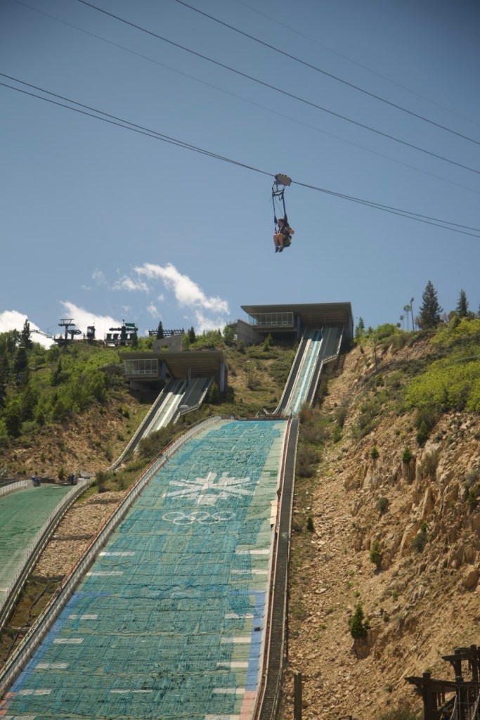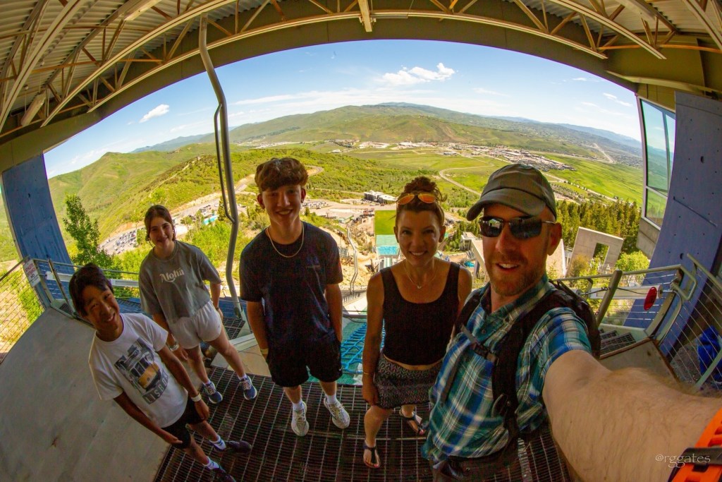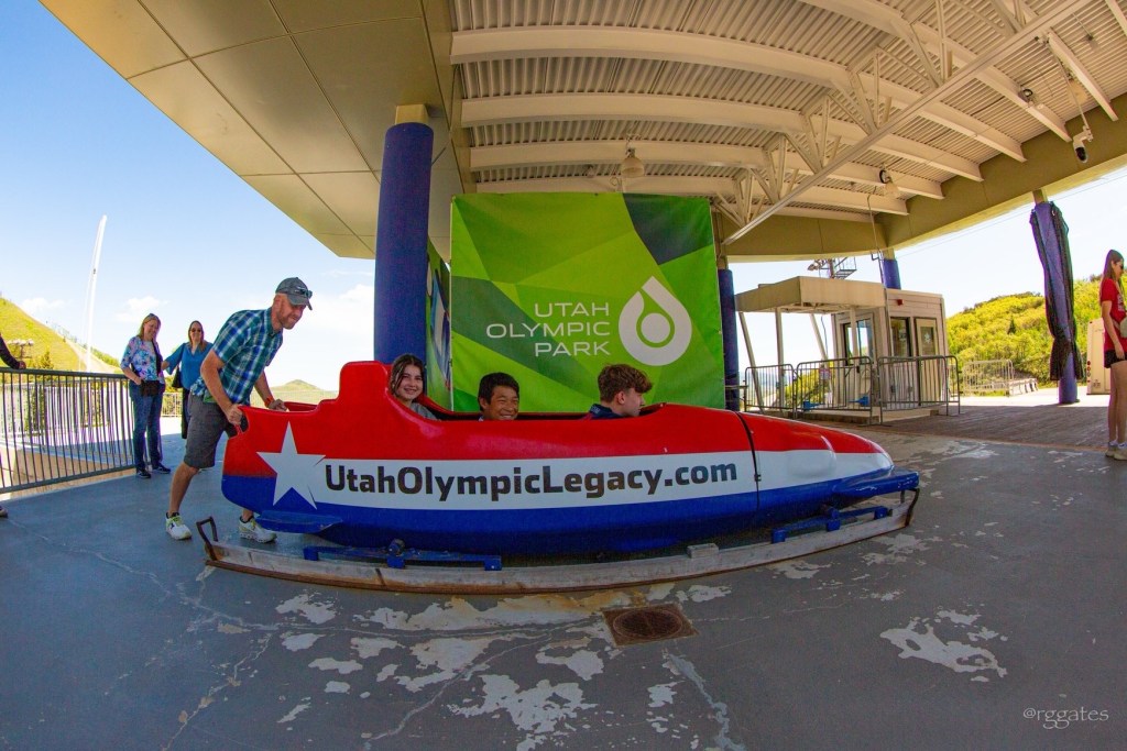 Utah Olympic Park maintained itself following its use in 2002 through the effort of dedicated volunteers and fundraisers, and is a premier winter games training facility year round to one degree or another, depending on the sport. They’ve also monetized it nicely by making portions of the venue accessible in warm weather for tourists like ourselves. We took a tour through the sledding venue, the ski jump venues, and the aerial training jumps and pool.