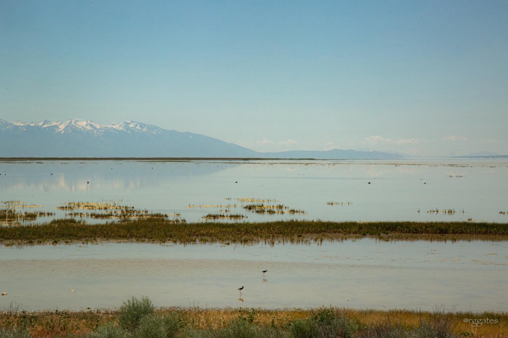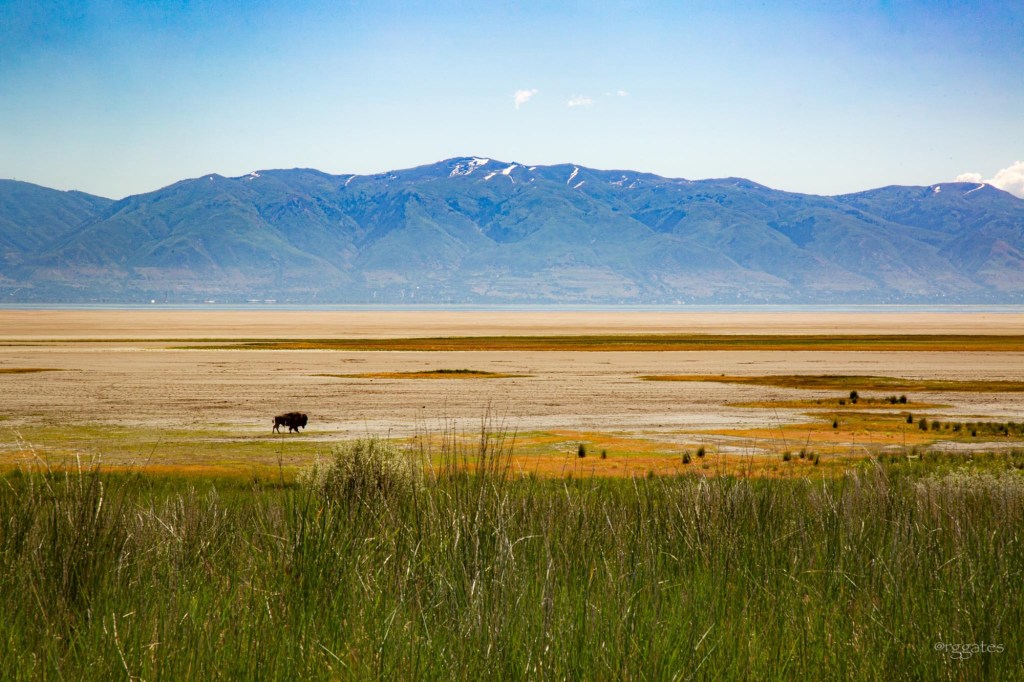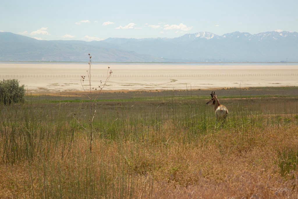 On getaway day, the timing of our checkout, rental car return, and flight was such that we had some morning hours to kill, so we drove to Antelope Island on the Great Salt Lake. Because of the heat and bugs (noseeums and mosquitoes), we stayed in the car, but the views across such an interesting lake to the city and the mountains, and seeing bison and pronghorn within a short drive from the city was a cool experience.