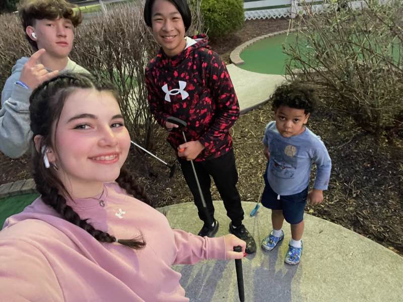 Sunday – colonial Williamsburg learned all about different jobs and trades. Watched a cannon go KABOOM! 🤯. gorged on delectable pasties. Departed for food, ate mid burgers. Played miniature golf with a smaller child called lil man later returning him to his mother